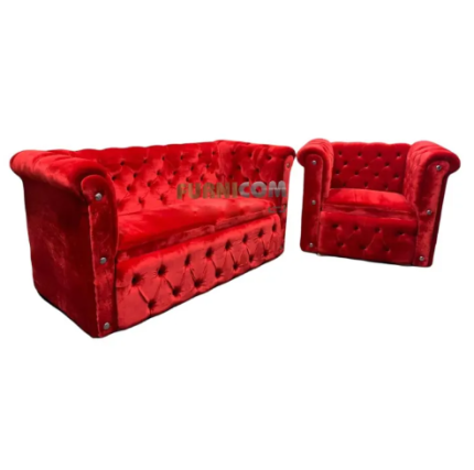 [:en]Velvet Button Tufted Classic Chesterfield Sofa Set Living Room Furniture Home and Office Sofa Blood Red (2+1)[:]