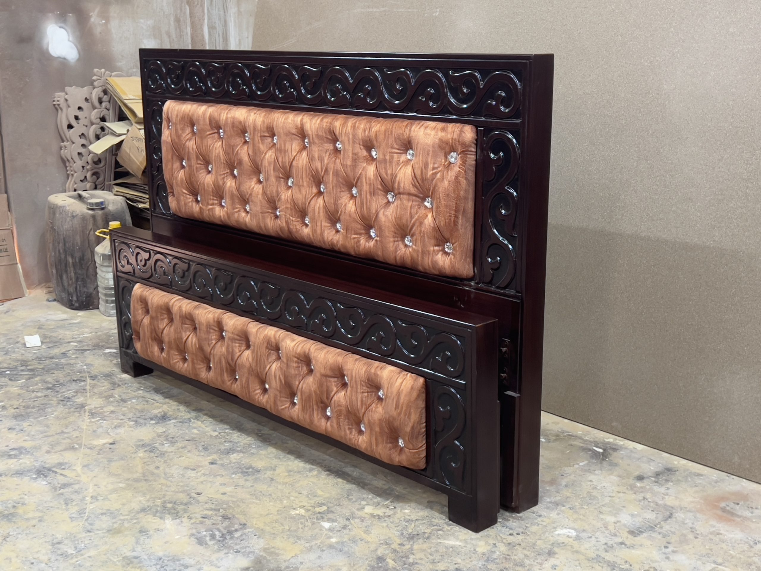 Materials: Solid Mehogany Wood Frame, Soft Rubber Foam, Velvet Fabric[:]