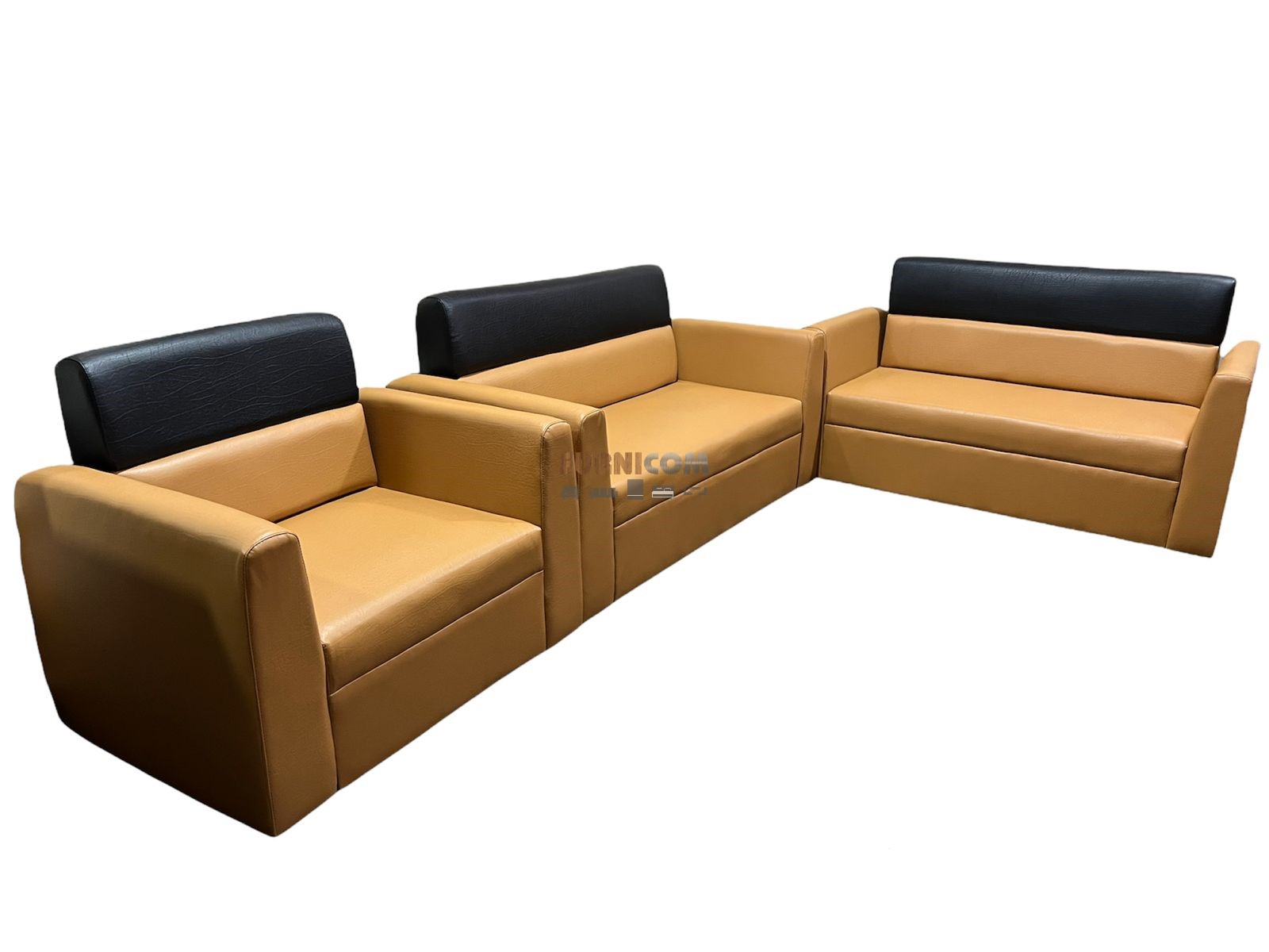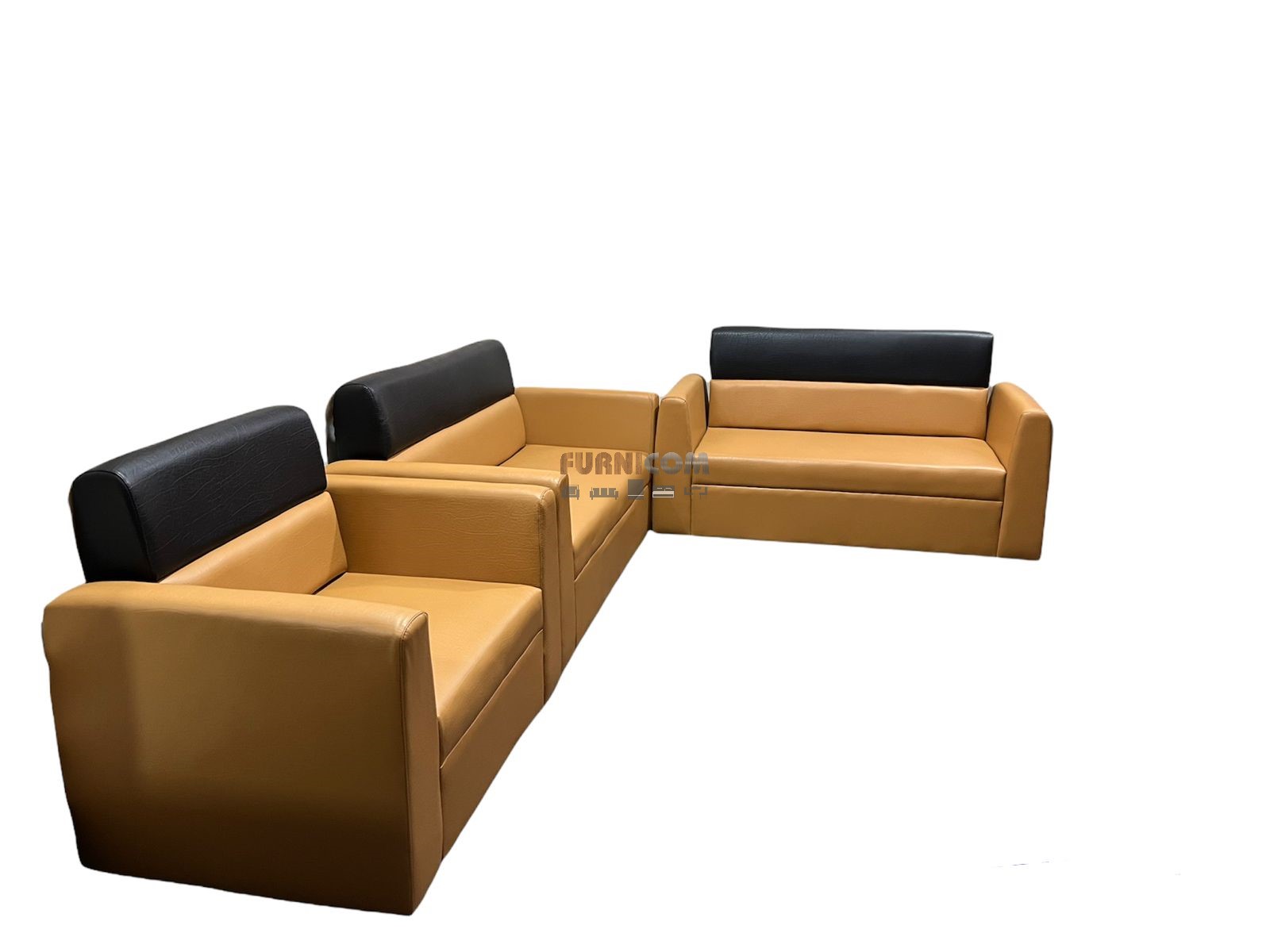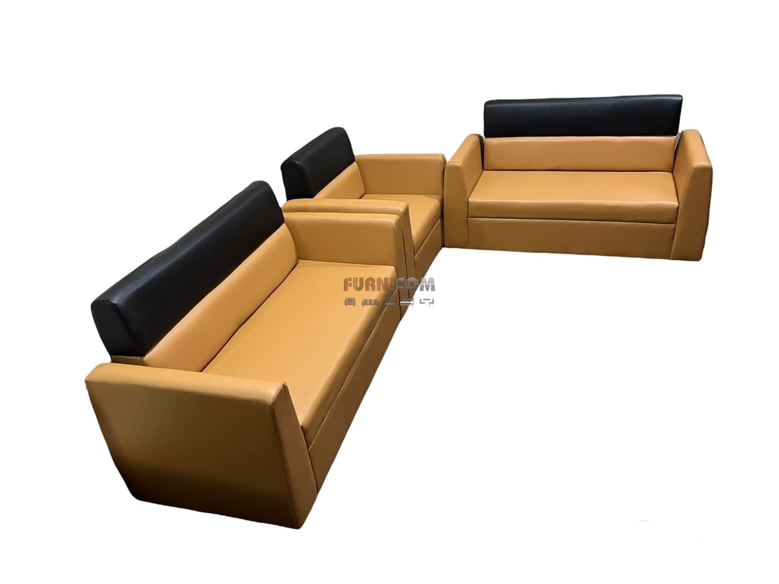 [:en]Living Room Sofa Set/ Faux Leather/ Mehogany Wood/ Orange Black[:]