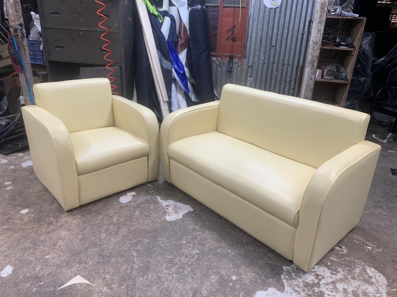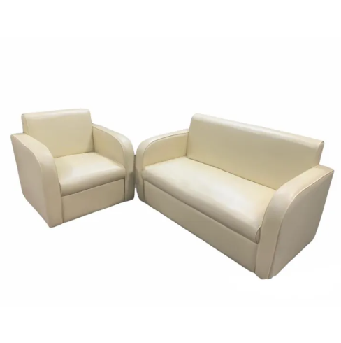 [:en]Synthetic Leather Straight-backed Snug Sofa Set for Living Room Off White (2+1)[:]